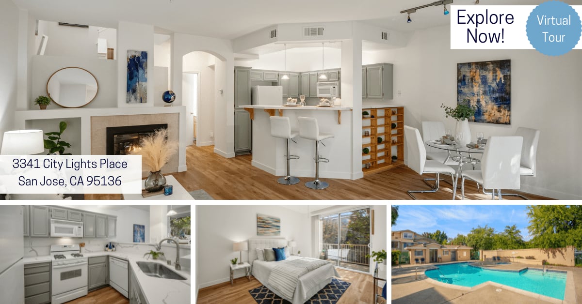 Wonderfully updated townhouse style home with attached 2-car garage in great location. Spacious 2-bedroom, 2.5 bathroom townhouse with large living area and dedicated dining space. Beautiful, brand new luxury, vinyl plank flooring throughout. New interior paint throughout. Kitchen features fantastic new quartz countertops with a new kitchen sink and faucet, freshly painted kitchen cabinets, and gas range. There is ample storage in the kitchen cabinets and plenty of counter space. Living room features a gas fireplace. The spacious primary bedroom features an en suite bathroom and large walk-in closet. A spacious laundry room leads to the attached 2-car garage with plenty of space for extra storage, workshop, or tools. Enjoy a patio off the dining area as well as a large balcony off the primary bedroom. Home includes central heat and A/C. Community includes pool and hot tub. Great location near Communications Hill close to Starbucks, Home Depot, Lucky Market, Martial Cottle Park, and more! Easy access to Highway 87.
